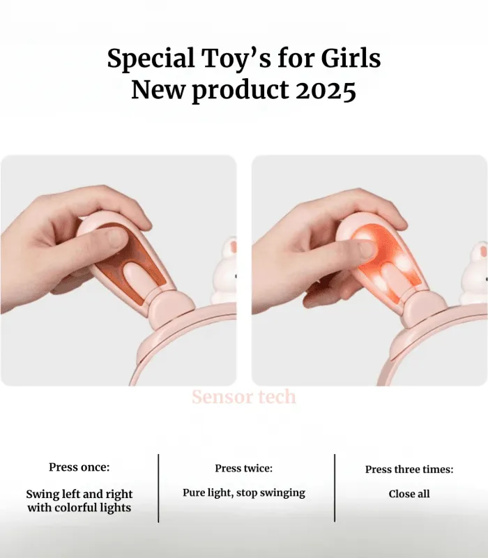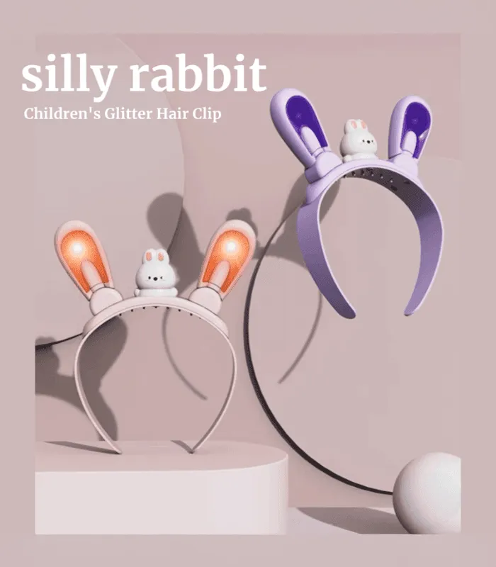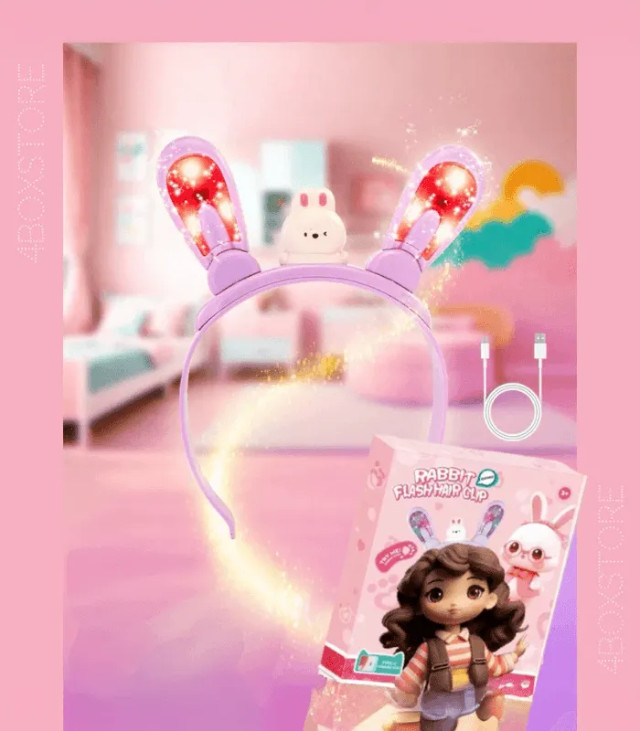 طوق شعر مزود بأذني أرنب تتحرك عند الضغط، مع تأثيرات مرحة تزيد من استمتاع الأطفال.