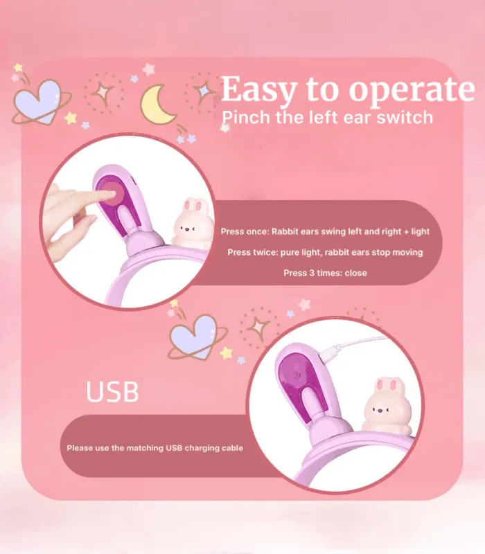 طوق شعر فريد مزود بأذني أرنب متحركتين يعمل بالشحن عبر USB، يوفر تجربة ممتعة وتفاعلية للأطفال، مثالي كهداية للبنات