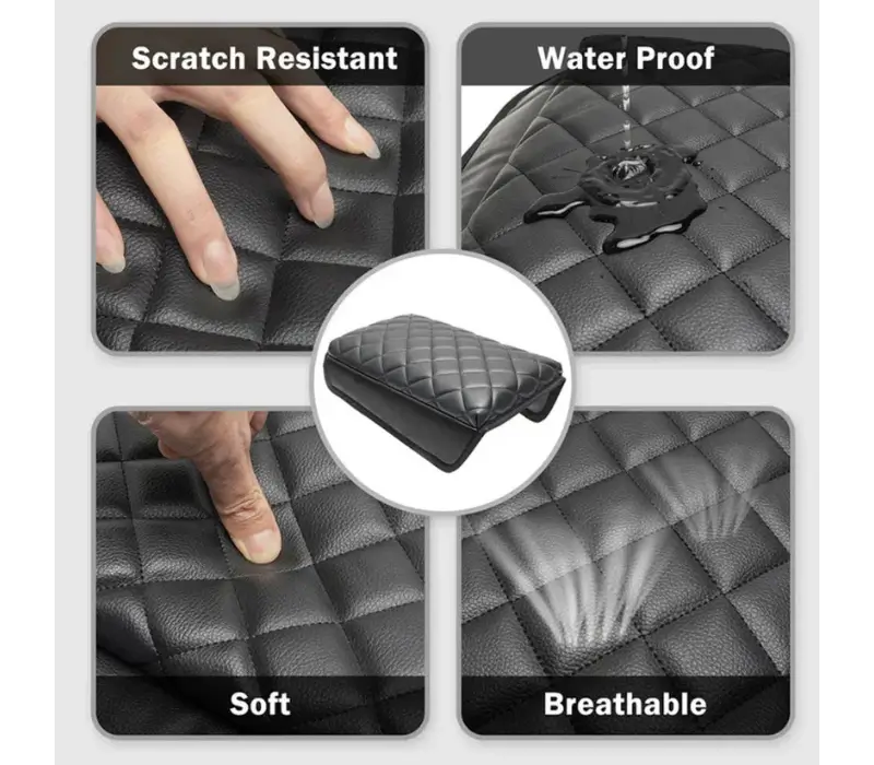 وسادة مسند ذراع السيارة مصممة لزيادة الارتفاع وتوفير الراحة، مزودة بحافظة تخزين مدمجة لحفظ الأغراض الشخصية، وتعمل كغطاء حماية للمسند المركزي