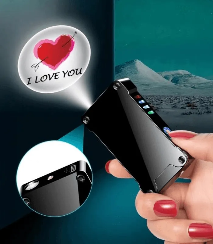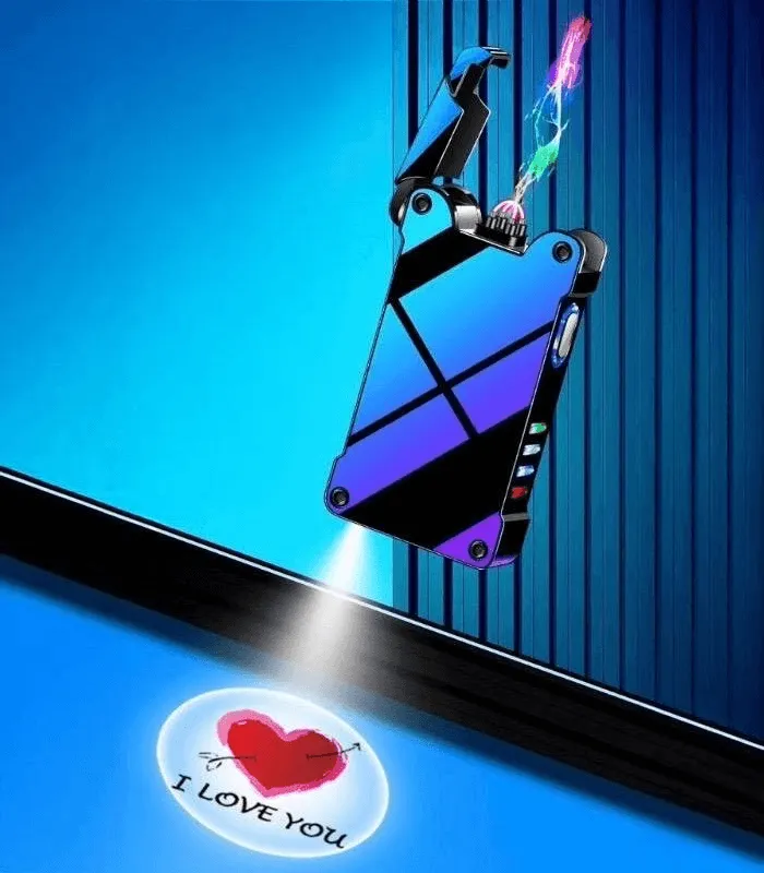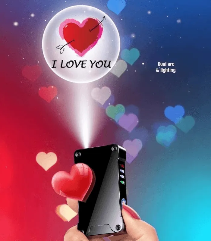 ولاعة إلكترونية بشحن USB مع بروجيكتور “I Love You” + شعلة Arc مزدوجة