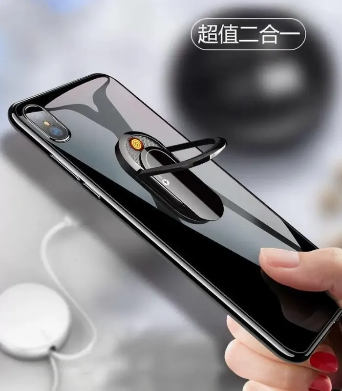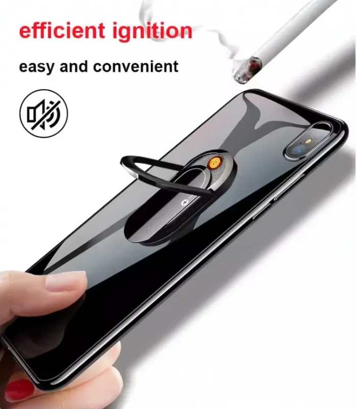 حامل موبايل ذكي + ولاعة قابل للطي بشحن USB – تصميم معدني أنيق